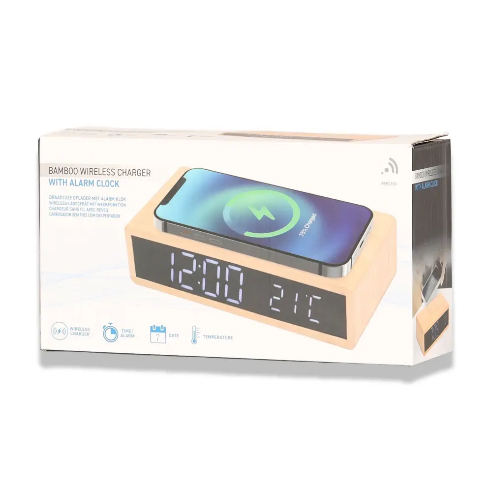 Bambu Gövde Kablosuz Şarj Cihazı Alarm-Saat-Takvim Özellikli