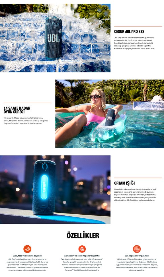 JBL GRIP Bluetooth Hoparlör, Siyah