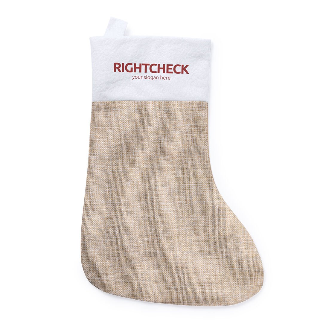 Doğal ve beyaz renklerin birleşiminden oluşan yılbaşı çorabı. Geniş markalama alanına sahip, asmak için şerit içerir.